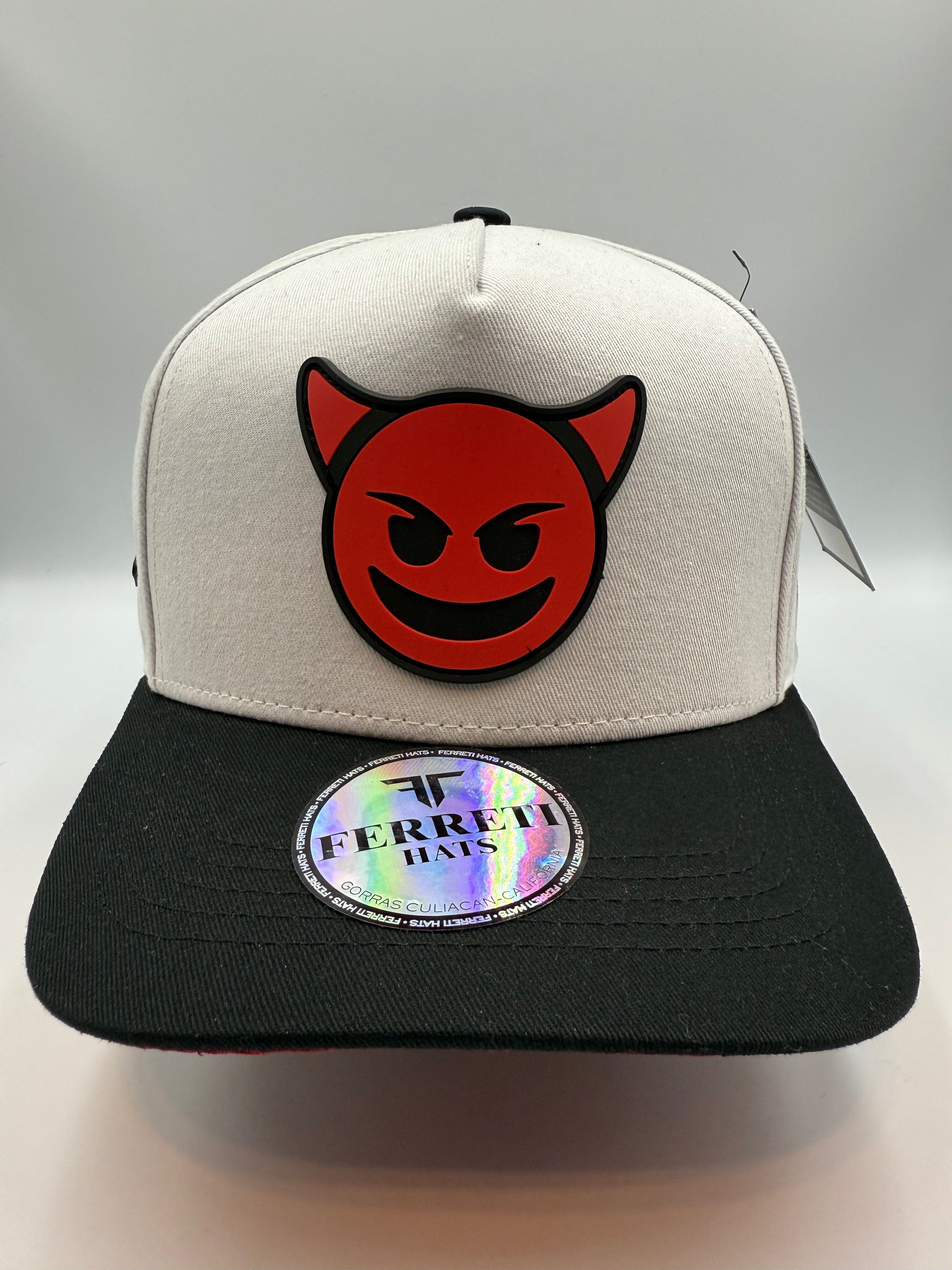 Gorra Ferreti color blanco con el emoji de Diablito en PVC